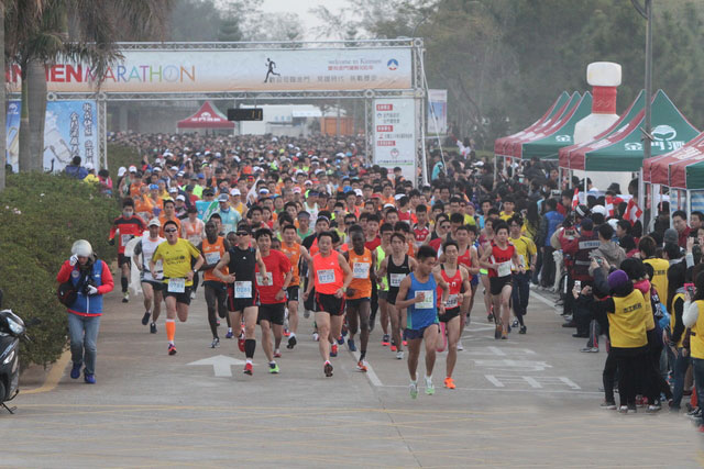 主辦單位表示,12日氣溫天候良好,希望島內外好手都能挑戰紀錄贏取獎金,主場終點站金門大學校園內還安排有熱騰騰的點心供跑完路跑的選手與民眾享用。(中國臺灣網 何建峰)