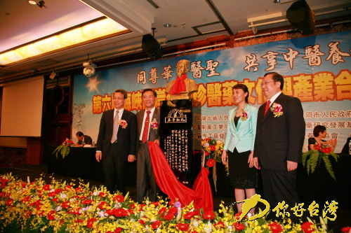 開幕式上,湖北省黃岡市人民政府、蘄春縣人民政府及李時(shí)珍醫(yī)藥集團(tuán),特別贈(zèng)送李時(shí)珍塑像給臺(tái)灣醫(yī)藥大學(xué),凝聚兩地中醫(yī)藥界的交流共識(shí)。