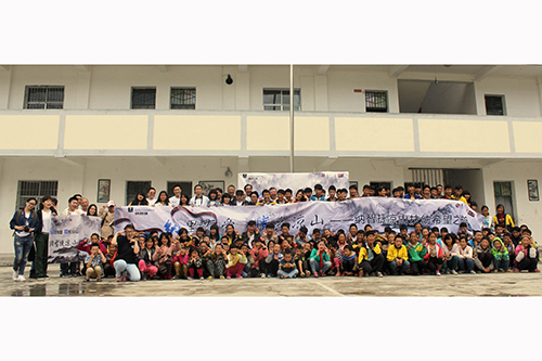 兩岸愛心人士與學(xué)校學(xué)生合影。