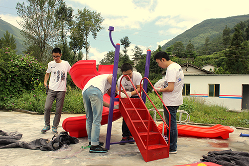 愛心人士為幼兒園安裝滑梯。