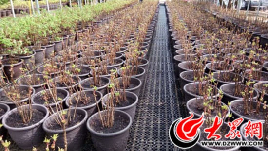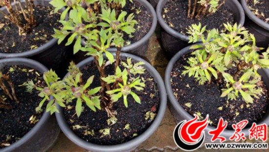 為配合花會展出,李博將牡丹苗分成兩批進行培植,首批培育了1000株。在室外搭建了大棚,棚頂鋪上塑料布和遮陽網(wǎng),以防降水。自然環(huán)境條件的不足,只好通過技術(shù)手段彌補。在培植過程中,李博等三人輪流值班,24小時不間斷觀察牡丹生長情況,出現(xiàn)天氣變化等情況后,通過調(diào)整藥量、人工破眠等手段,多方面進行管理。
