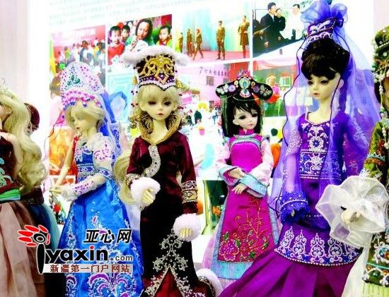 圖為11月9日,在北京文博會新疆7坊街創意產業集聚區展位,出自中國工藝美術大師單秀梅之手的漂亮的布偶娃娃,惟妙惟肖地“站”在展位最顯眼處。張迎春 攝