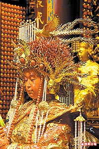 寶石珊瑚媽祖神尊鳳冠上的鳳凰姿態多變,凸顯神尊莊嚴神情。來源:臺灣《蘋果日報》