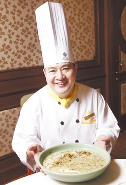 林輝是寧波當地人,擁有近20年的經驗,曾接待過連戰、宋楚瑜、王永慶等名人,雪菜大黃魚是寧波熱菜中的代表。(高政全 攝)