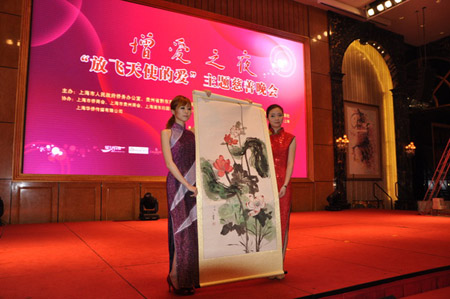 在愛心拍賣的環節,記者發現,來自臺灣“畫家父子” 徐術修、徐乙澤的《夏荷》和《報春》,在主題慈善晚會上各拍得三萬八千元人民幣,成為拍賣現場拍品成交的“最高價”。