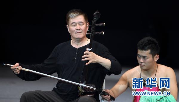 7月3日,趙本山(左)在表演二胡獨奏《賽馬》。新華社記者 費茂華 攝