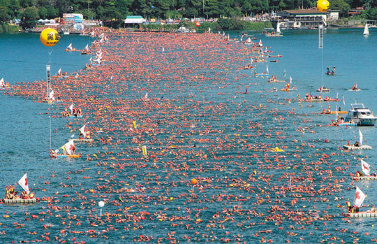 2010日月潭萬人泳渡嘉年華昨天上午在日月潭展開,共有27123人參加,創泳渡日月潭舉辦28年來人數最高紀錄。遺憾的是,在臺灣工作的馬來西亞籍電子工程師沈政宏,昨天下水后失蹤,今天將持續搜救。