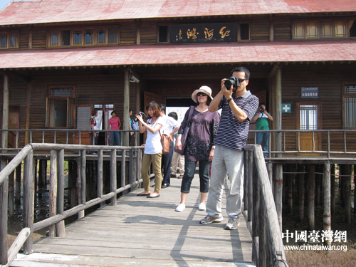 中國臺灣網9月13日盤錦消息 13日上午,參加兩岸媒體遼寧行的24名記者走進遼寧盤錦市,欣賞世界奇觀“紅海灘”景色。