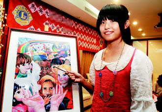 中新網10月8日電 據臺灣《聯合報》報道,臺中市五權初中三年級學生陳郁旻,參加2009到2010年度聯合國和國際獅子會合辦的國際和平海報創作比賽,擊敗35萬名參賽者,勇得世界第一。