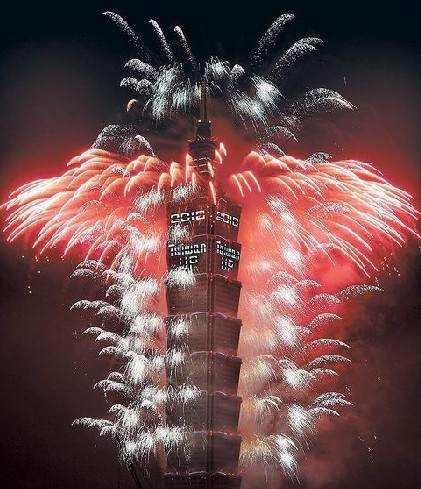 據(jù)臺灣《蘋果日報》報道,迎接辛亥百年,臺灣將有七場大型跨年煙火,精彩度更勝往年。知名爆破藝術(shù)家蔡國強首度為臺北101金融大樓、大佳河濱公園慶典設(shè)計煙火,已知101煙火耗資六千萬元(新臺幣,下同)居七場之冠,高雄義大世界以五萬發(fā)煙火稱霸,云林劍湖山世界施放六百七十一秒則是臺灣最久。