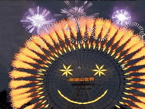 義大世界規(guī)劃全區(qū)施放五萬發(fā)高、低空煙火,將環(huán)繞整個園區(qū),時間長達十分十秒,號稱“十全十美”。