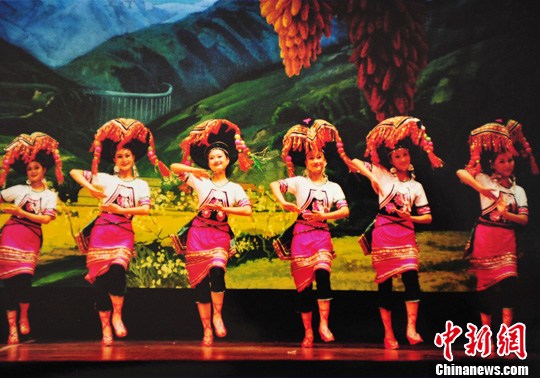 2月24日,應臺灣高雄市海峽兩岸經貿文化交流協會邀請,由四川省臺辦、涼山州政府組織的“四川民族歌舞交流團”啟程,赴臺灣中南部地區進行為期九天的交流演出。行前,有關方面在成都舉行了簡短的啟動儀式。圖為赴臺演出節目劇照。中新社發 涼歌宣 攝