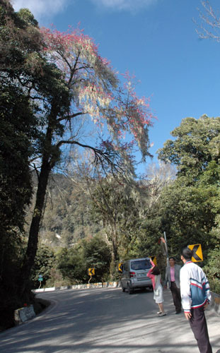 臺(tái)灣南橫公路向陽(yáng)游樂(lè)區(qū)附近的百年原生種櫻花古樹(shù)已經(jīng)陸續(xù)綻放,蒼勁樹(shù)干、艷紅的花朵,披上地衣,給人不同的感受。 圖片來(lái)源:“中央社”