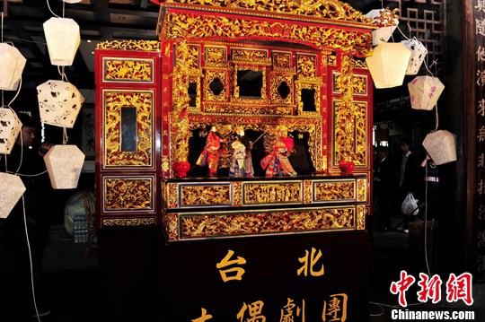 為期5天的“兩岸同根 致力為公”川臺大型文化交流活動于4月12日在成都啟動。圖為精彩的布袋戲三國演義表演。中新社發(fā) 安源 攝