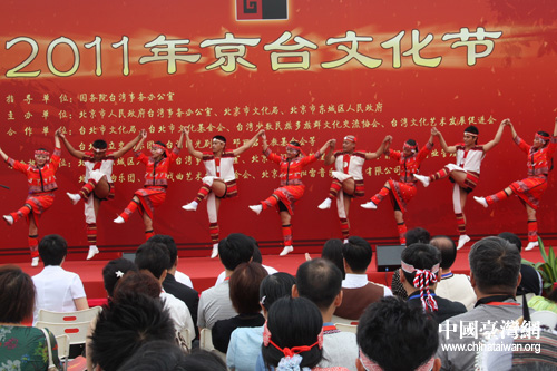 中國(guó)臺(tái)灣網(wǎng)9月1日北京消息 今日上午,以“交流·融合”為主題的2011年京臺(tái)文化節(jié)在北京前門的臺(tái)灣文化商務(wù)區(qū)隆重開幕。開幕式上,臺(tái)灣少數(shù)民族帶來了由音樂和舞蹈組成的精彩演出。(記者 陳葉群)
