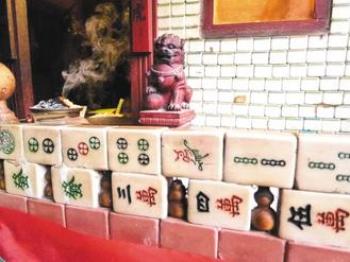 臺南鹽水大眾廟有座迷你“麻將廟”,由廢棄的5000張麻將牌砌成,春節期間人氣很旺。(圖片來源于:臺灣《聯合報》)