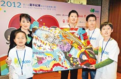 大陸小朋友繪制了一幅在臺(tái)灣游玩經(jīng)驗(yàn)的圖畫(huà)贈(zèng)送給主辦單位SOGO百貨董事長(zhǎng)黃晴雯(后左)。圖片來(lái)源:臺(tái)灣《中國(guó)時(shí)報(bào)》