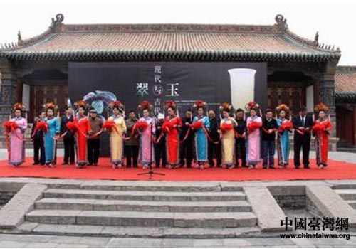 “翠與玉——現(xiàn)代與古代的對(duì)話”藝術(shù)展開幕儀式現(xiàn)場。(圖片來源:沈陽市臺(tái)辦)