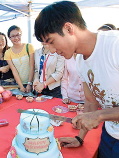 人民網5月18日電 王力宏昨過36歲生日,人在云南拍戲的他,劇組準備蛋糕為他慶生,微博也涌進12萬粉絲祝賀,藝人徐若瑄(Vivian)來湊一腳,呼喚“王二嫂敢緊現身”,被粉絲拱“你嫁給他就好了啊!”