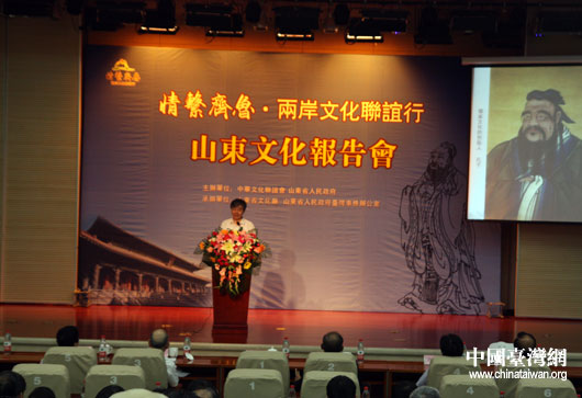 上午9時許,參加“情系齊魯——兩岸文化聯誼行”的一百多位兩岸文化界人士,來到山東博物館報告廳,聽取山東省委宣傳部副部長、山東省文化廳黨組書記徐向紅主講的山東文化報告會。徐向紅向嘉賓們祥細闡述了以“儒家文化”為主體的齊魯文化誕生、發展、演變及對當今世界的影響。
