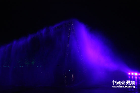 霧森以特有的高科技技術為《印象西湖》再造了“西湖雨霧”,配合五彩的燈光與西湖的美景,它的每一次出現都引起觀眾自發地熱烈鼓掌。(中國臺灣網發 莫高泉 攝)