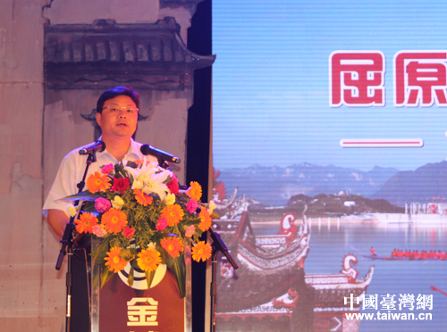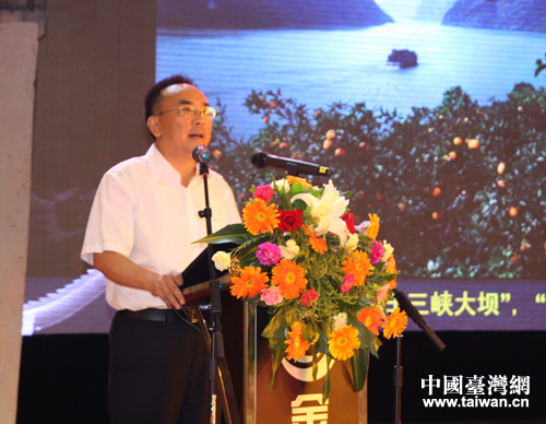 “屈原秭歸 三峽大壩”旅游產(chǎn)品形象發(fā)布會在秭歸縣舉辦,秭歸縣縣長盧輝在會上致辭。(中國臺灣網(wǎng) 李杰 攝)