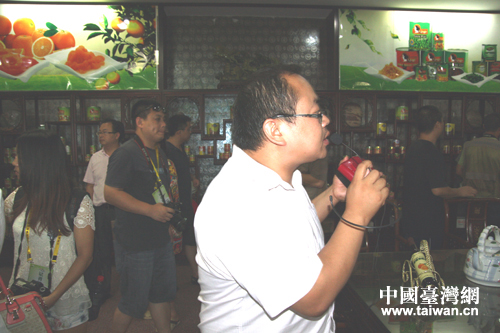 記者團參觀湖北省農(nóng)業(yè)產(chǎn)業(yè)化重點龍頭企業(yè)——以臍橙加工為主要特色的秭歸屈姑食品有限公司。(中國臺灣網(wǎng) 李杰 攝)