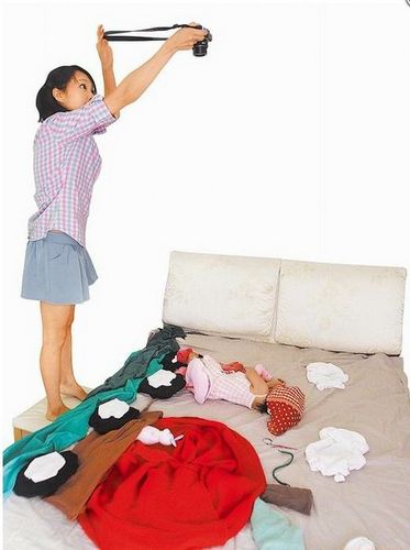 “不用特別花錢買道具,身邊的衣物都可當布置背景!鼻窬个┙ㄗh想學拍情境照的父母,最好抓小孩熟睡期間,以免調整姿勢易驚醒小孩。