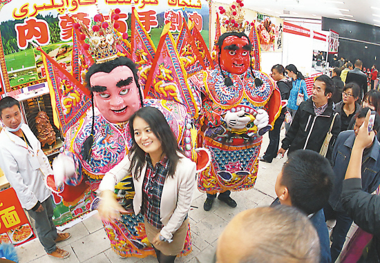 昨天,2013全國品牌服裝直銷展暨臺灣海峽兩岸特產美食節在南京舉行,此次特產美食節集結了190多家企業,涵蓋購物、美食和服飾等諸多內容。圖為來自臺灣的傳統民俗藝陣三太子表演,為兩岸美食節增添一份民族地域特色。本報記者葛 訊攝