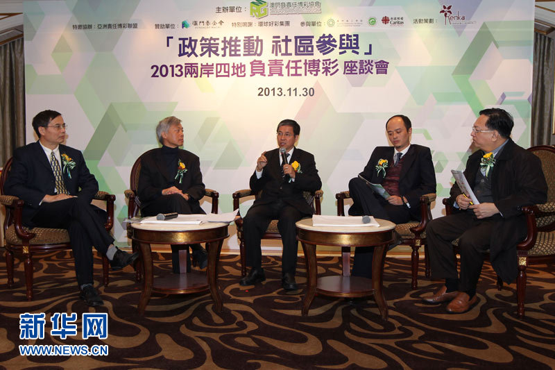 當日,由澳門負責人博彩協會主辦的2013兩岸四地負責任博彩座談會在澳門舉行,來自內地及港澳臺的專家學者就澳門博彩業及澳門經濟多元化發展進行了探討。 新華社記者 程光明 攝