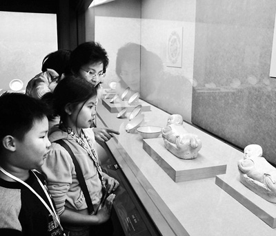 近日,臺(tái)北故宮館藏定窯瓷器特展開(kāi)幕,臺(tái)北故宮精選132件作品展出,公眾可近距離感受定窯瓷器的風(fēng)采。定窯為我國(guó)宋代著名瓷窯之一,其白瓷作品頗受推崇。圖為1月10日觀眾在展廳內(nèi)觀看定窯嬰兒枕。