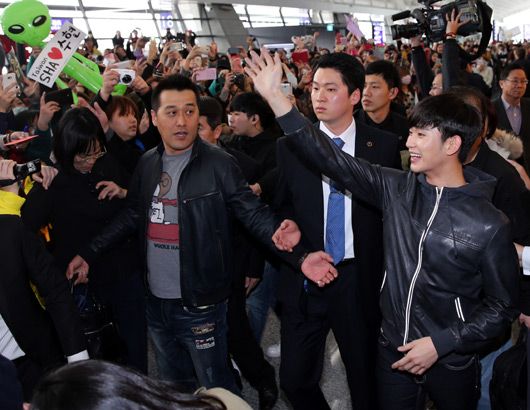 金秀賢步下飛機(jī),在登機(jī)門就有大批粉絲目睹風(fēng)采,隨后,他在保安護(hù)送下,走正常通關(guān)入境,在入境大廳則有大批粉絲守候,粉絲見到偶像,瘋狂尖叫,場(chǎng)面一度混亂。