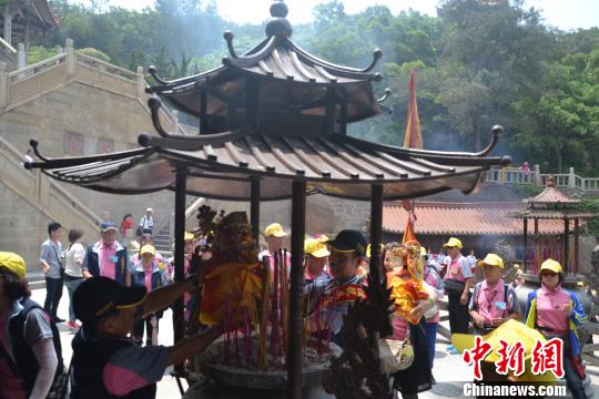 6月4日,來自臺灣苗栗后龍慈云宮的140余名媽祖信眾齊聚“媽祖故里”福建莆田湄洲島謁祖進香。