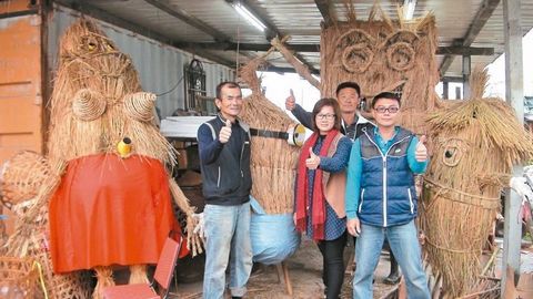 她說,為響應環保,制作的稻草玩偶完全選用環保材質,像是身體的支架,是親自上山砍老家的竹子、或是選用竹籠,身體則用稻稈慢慢捆綁成型;玩偶腳穿的雨鞋,是向朋友借來的,等活動結束后,再歸還“一點也不浪費”。