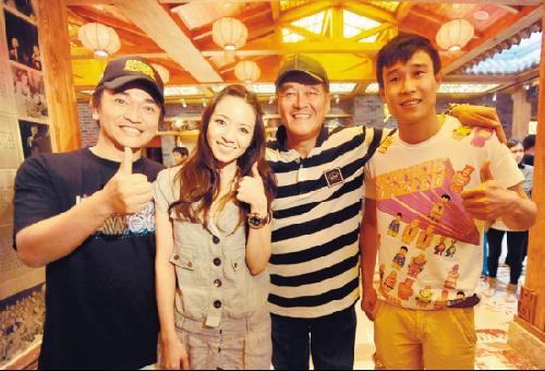 吳宗憲(左一)、侯佩岑(左二)來沈,趙本山(右二)、小沈陽接待。