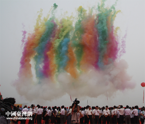 啟動儀式結(jié)束后,未散盡的彩色煙霧猶如祥云般升騰在會場上空。(中國臺灣網(wǎng) 張蕾 攝影)