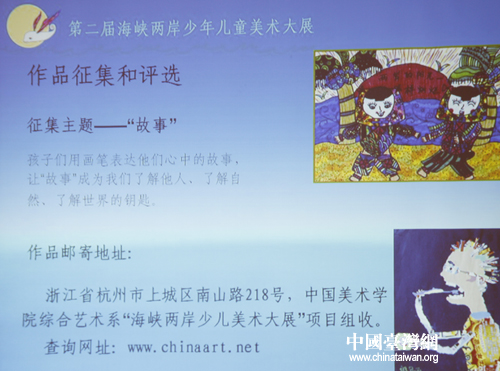 “第二屆海峽兩岸少兒美術(shù)大展”會(huì)標(biāo)(中國(guó)臺(tái)灣網(wǎng) 孫金誠(chéng) 攝)