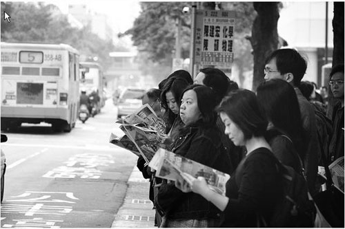 臺(tái)灣民眾在街頭閱讀報(bào)紙、雜志