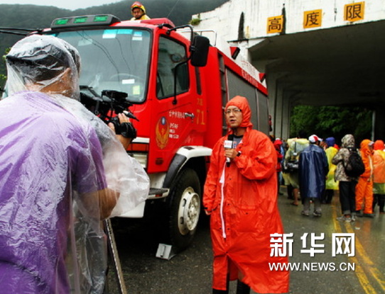 記者在蘇花公路報(bào)道(新華社記者任沁沁攝)