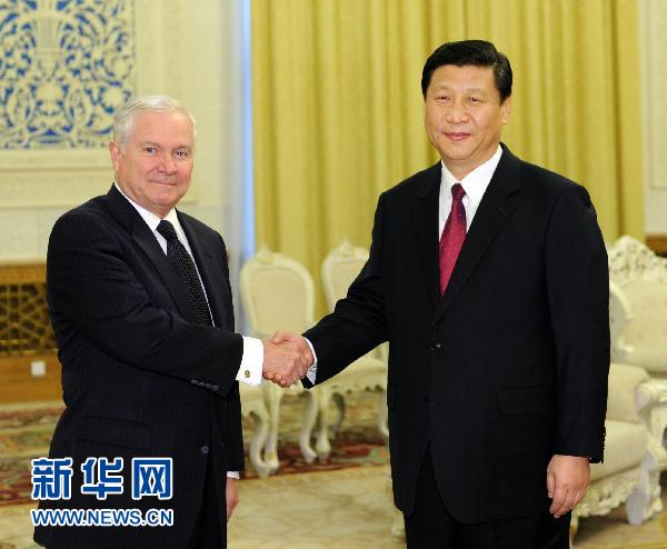 國家副主席、中央軍委副主席習近平10日下午在人民大會堂會見了來訪的美國國防部長羅伯特·蓋茨一行。