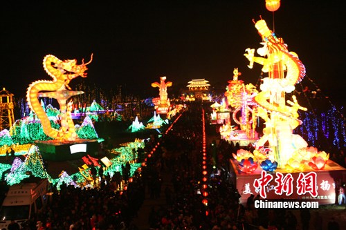 29日,“神龍躍兩岸,盛世共和諧”2011江蘇(揚(yáng)州)燈會在揚(yáng)州瘦西湖畔宋夾城正式亮燈迎客,再現(xiàn)“火樹銀花不夜天”勝景。崔佳明 攝