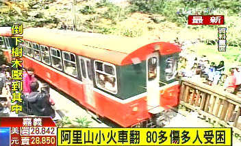 中國臺灣網4月27日消息 綜合臺灣媒體報道,嘉義縣阿里山1列開往神木火車站的小火車,于12時10分行經一處彎道時,因為路邊一棵大樹倒塌壓到小火車,造成小火車4節車廂出軌翻車,已傳出60余人重傷,至少5人死亡,目前救援還在進行中。嘉義縣消防局表示,車上大多為陸客。