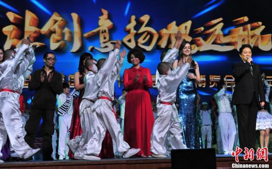 11月9日晚,臺灣歌手蔡琴(中)出席了在北京人民大會堂舉行的第六屆中國北京國際文化創意產業博覽會開幕式文藝晚會演出,并演唱了《時光》和《你的眼神》等兩首經典歌曲。 中新社發 鄒憲 攝