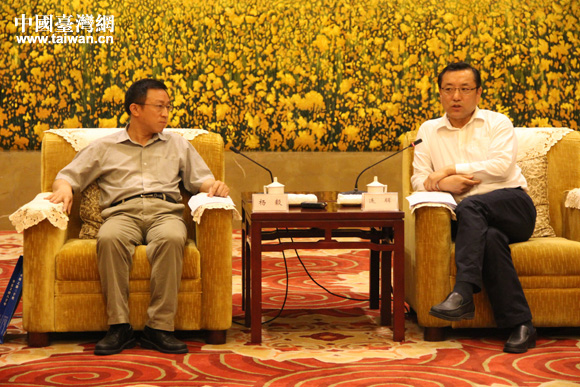 甘肅省委宣傳部長會見以楊毅為團長的兩岸記者團一行。(中國臺灣網 王文英 攝)