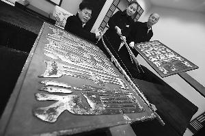 前天,臺灣同胞抗日文物捐贈活動在中國人民抗日戰爭紀念館舉行,圖為工作人員將臺灣被割讓時期抗日名將林朝棟使用的功名牌和臺灣少數民族抗擊日寇使用的弓箭進行入藏。本報記者 饒強攝