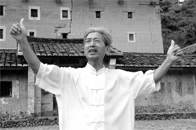 初見莊國清,他正悠閑地用板胡拉山歌,偶爾還哼唱上幾句。與簡良發一樣,今年65歲的莊國清在南靖也是一個名人,不但成立了“土樓F4”組合,還在臺灣拿過金獎。