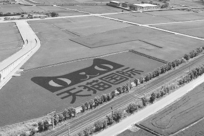 在碧綠的田野上繪出多姿多彩的“稻田畫”,該是多么神奇的事兒。近日,記者來到臺灣花蓮玉里鄉探訪,只見一望無際的綠油油稻浪中浮現出紫黑的天貓圖案和“天貓國際”(右圖下)四個大字。