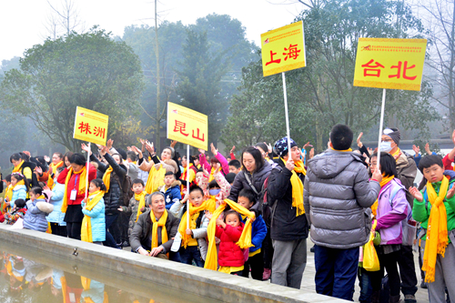 來自兩岸9個城市(上海市、昆山市、臺北市、珠海市、深圳市、長沙市、株洲市、益陽市、成都市)的親子家庭和志愿者約200人開展了為期4天的文化交流,表演了經典話劇、快板、情景劇、手語舞《禮運大同》等,誦讀了《論語》、《老子》,河洛漢音誦讀《千字文》等。志愿者還在現場發放新年愿望卡片,讓孩子們寫下自己的新年愿望。“我要祝爸爸媽媽身體健康”,“我要學習進步”,“我要祝世界和平”,大家紛紛將自己美好愿望和新年祝福寫下來,祝福每個家庭幸福和諧。