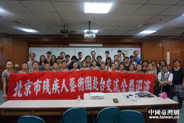 北京市殘疾人藝術團參加交流座談并合影留念。(中國臺灣網 雍紫薇 攝)