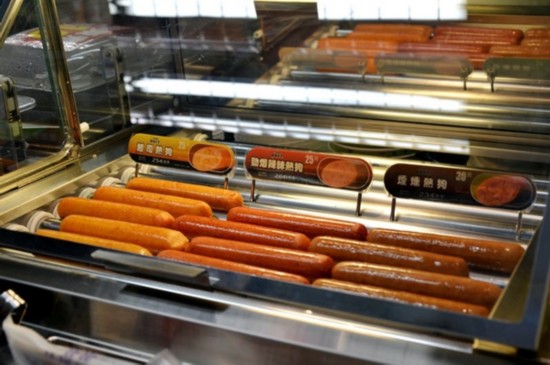 在大陸見(jiàn)到的臺(tái)式烤腸,就是那種在烤腸機(jī)上轉(zhuǎn)呀轉(zhuǎn),等熟了后拿根竹簽一穿,舉在手里就可以吃的香腸。